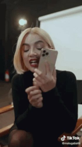 Manu Gavassi, the Brazilian singer and actress, is seen intently looking at her smartphone.