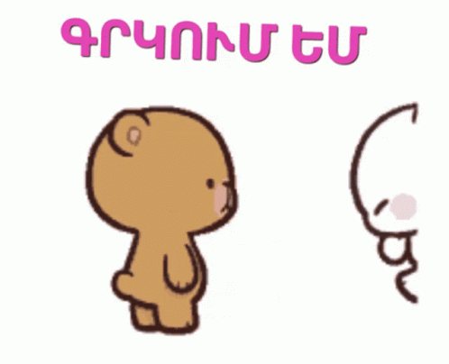 Two adorable cartoon bears, one brown and one white, share a loving hug with hearts floating around them.