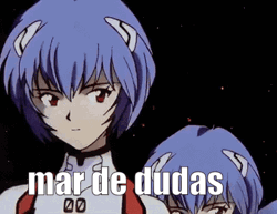 Rei Ayanami from Evangelion appears in a repeating line with the Spanish text 'mar de dudas' (sea of doubts).
