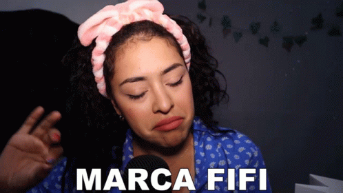Merith Aranda discusses 'Marca Fifi' in an ASMR video, wearing a pink fluffy headband and a blue patterned shirt.