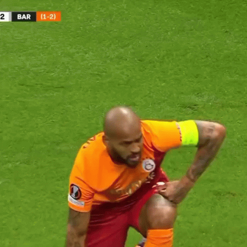 Marcao Teixeira, wearing his Galatasaray jersey with number 45, stands on the football field during a match.