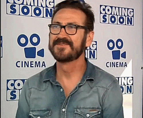 Marco Giallini winking, wearing glasses and a beard, at a cinema event.