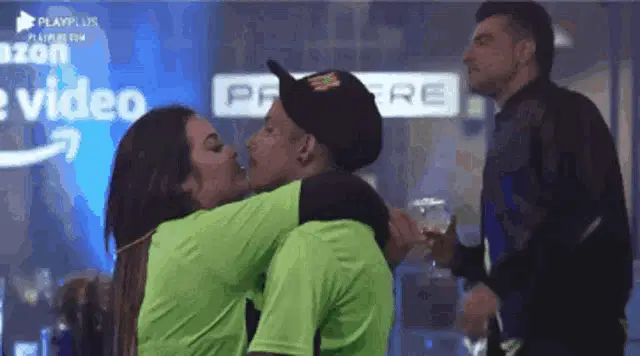 Mari Matarazzo and Matheus Yurley share a warm hug during the Brasil Power Couple show.