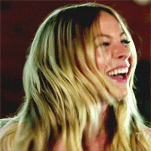 Marie Mai, the blonde-haired singer, shares an infectious, wide-mouthed laugh, radiating joy and humor.