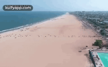 Stunning aerial view of Marina Beach, one of the world's longest urban beaches, stretching along the coast of Chennai.