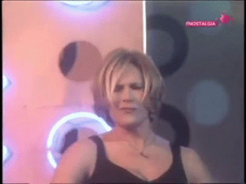Marina Perazic performs her song 'Debela' live on stage, dancing in a black outfit with neon lights.