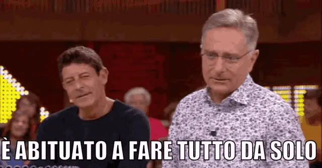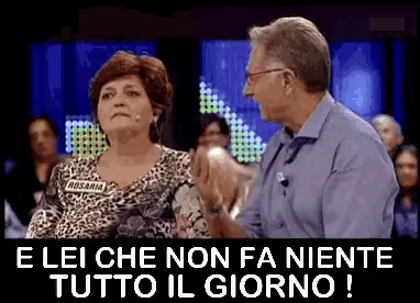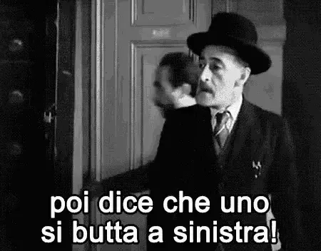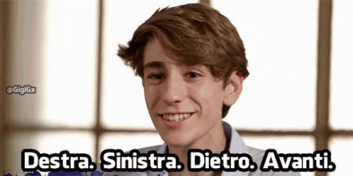 Mario Tricca from Il Collegio gestures while saying 'Right, Left, Behind, Forward!' in this viral clip.