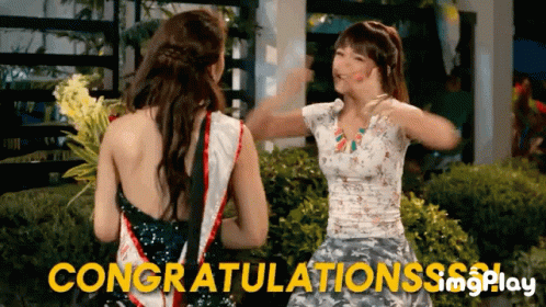 Maris Racal receives a warm, congratulatory hug from a friend, celebrating an achievement with flowers.