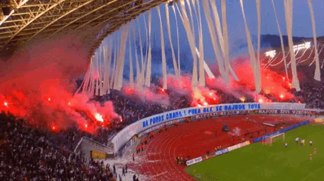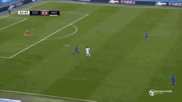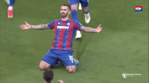 Marko Livaja, wearing jersey number 10, celebrates a goal with his teammates on the football field.