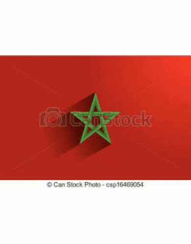 Map of Morocco in red with a green star, set against a red background with a faded star.