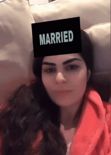Ela Kir reacts with an upset expression to the word 'MARRIED' appearing above her head.