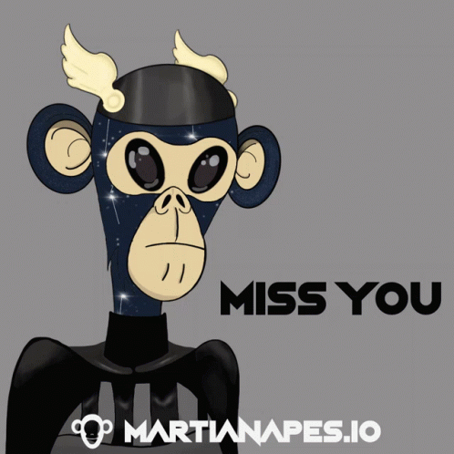 A Martian Ape NFT character with wings and a helmet, featuring the text 'Miss You' and 'MartianApes.io'.
