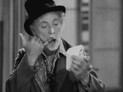 A Marx Brother, likely Groucho Marx, comically brushing his teeth in a classic black and white scene.