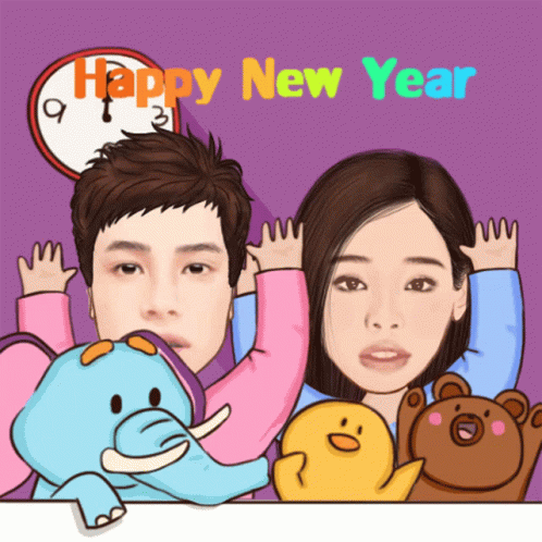 Donny and Maymay celebrate New Year with a countdown, featuring cute animated characters and stuffed animals.
