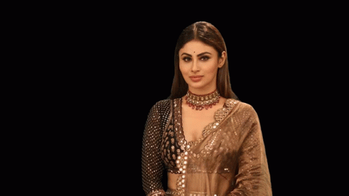 Mouni Roy looking stunning in a sequined outfit, making an 'OK' gesture with a confident smile.