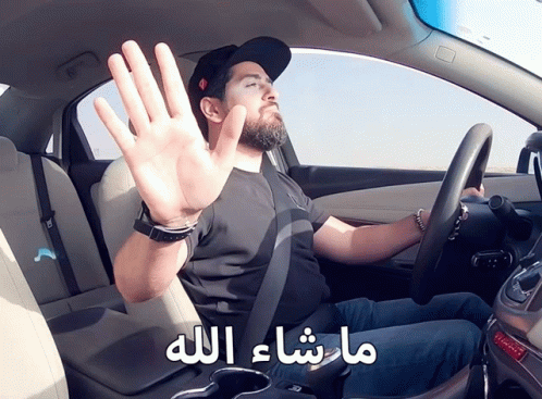 Man in a car reacts with 'Masha'Allah' and 'Ya Salam', expressing amazement and awe while driving.