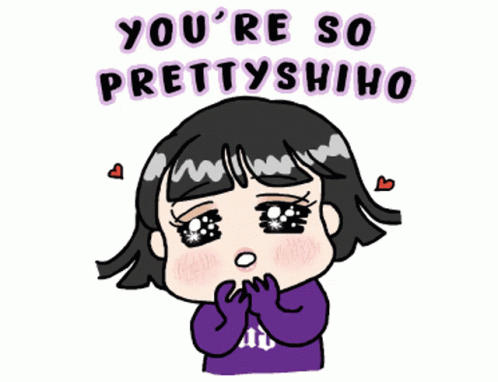 A cute chibi girl, Mashmellow, surrounded by hearts with the text 'YOU'RE SO PRETTYSHIHO'.
