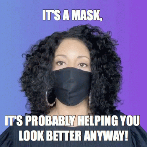 Holly Logan, wearing a black mask, delivers a message: 'It's a mask, it's probably helping you look better anyway!'