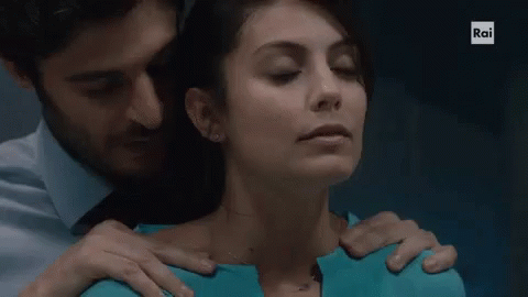 Lino Guanciale gently massages Alice Allevi's shoulders, a tender moment between the characters from L'allieva.