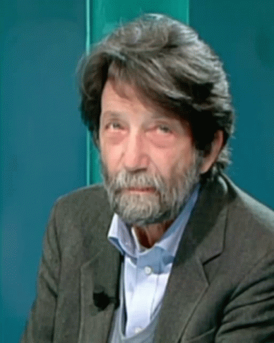 Massimo Cacciari, an Italian philosopher, adjusts his hair while wearing a suit and a watch.