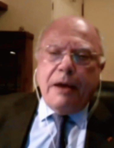 Massimo Galli passionately exclaims 'Shame on you!' with an intense expression, wearing a suit and earbuds.