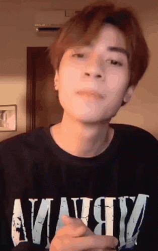 Master D Quang Hung, wearing a black Nirvana shirt, looks at the camera and interacts, possibly singing or speaking.