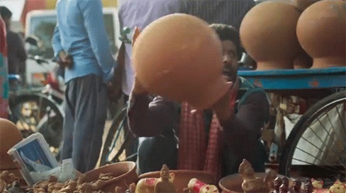 Vineet Kumar Singh selling traditional clay pots at a market in Pharsua, showcasing local craftsmanship.