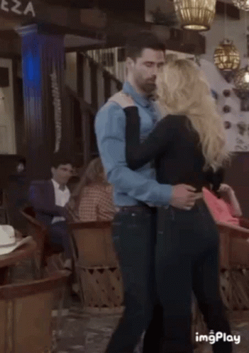 Matias Novoa and Michelle Renaud, as Juan and Sara, share an intimate dance in a restaurant scene from Matchell La Herencia.