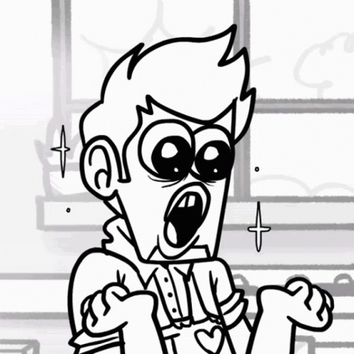 Animated character Matt from Eddsworld with big eyes and a heart on his chest, expressing surprise.