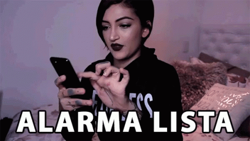 Matu Garces sets her alarm on her phone, with 'Alarm Ready' displayed, preparing for an early start.
