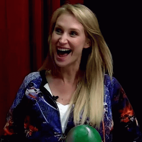 Maude Garrett reacts with an open mouth, looking excited while holding a green ball.