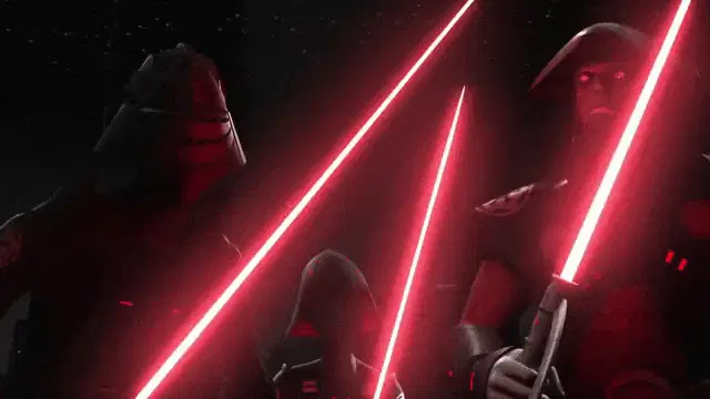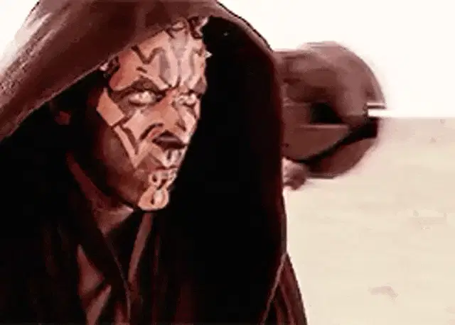 Darth Maul's intense gaze and iconic facial markings from Star Wars: The Clone Wars, featuring a lightsaber.