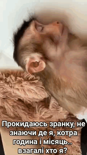 A sleepy monkey slowly wakes up, looking confused about its surroundings and existence.