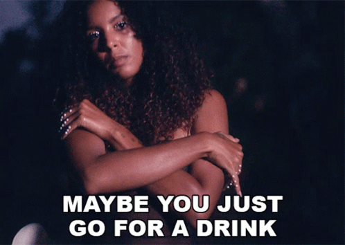Arlissa in a pensive moment with the text 'Maybe You Just Go For A Drink' overlaid, from her song.