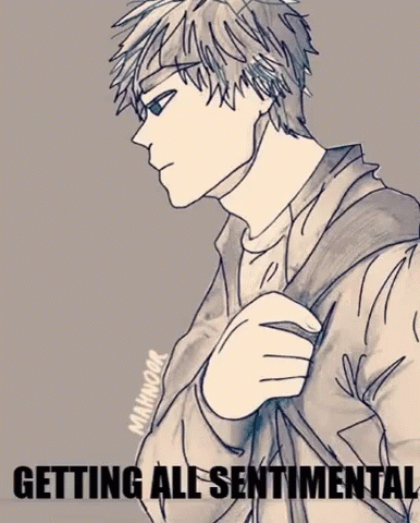 A drawing of a man, possibly Mazz Nol or Yeonggi, looking pensive with the text 'Getting All Sentimental'.