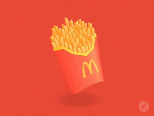 Animated McDonald's french fries carton floating against a vibrant red background.