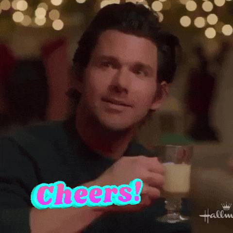 Actor Kevin McGarry raises a glass and smiles, with 'Cheers!' displayed on screen.