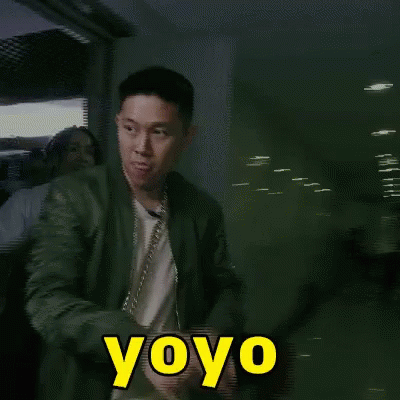 Mcjin performs a hip hop dance, with the word "yoyo" displayed, likely from his "Rap of China" performance.