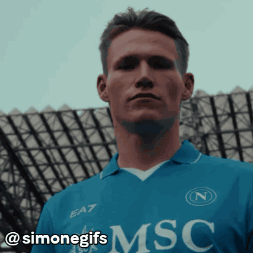 Scott McTominay poses in a blue Napoli football jersey, featuring MSC and the club's 'N' logo.
