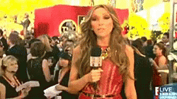 Kristen Wiig smiles for the camera while walking the red carpet, as an interviewer speaks into a microphone.