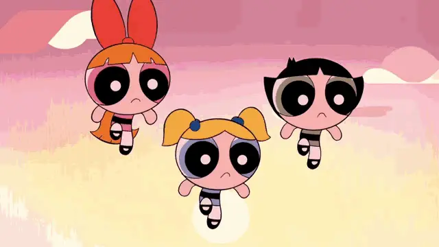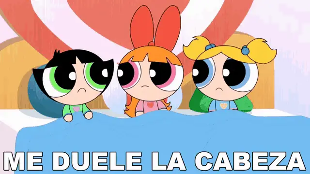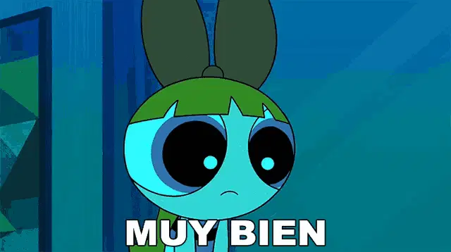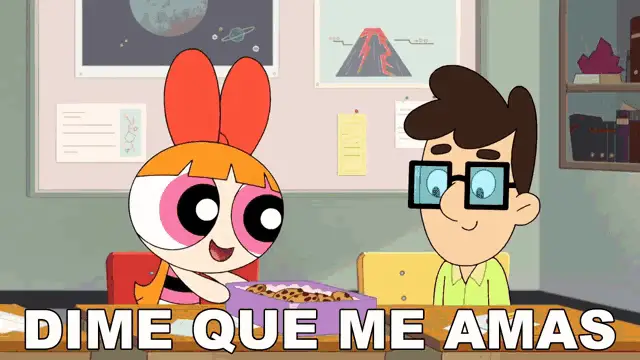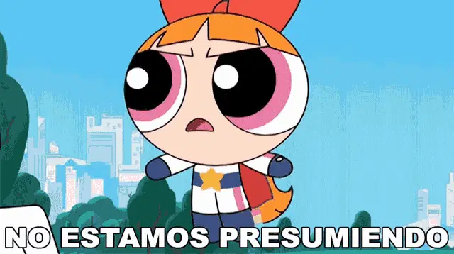 Bombon (Blossom) from Powerpuff Girls stands next to a punk-rock character, with the Spanish phrase 'Me Da Igual' (I don't care) displayed.
