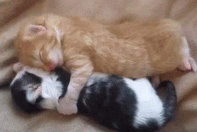 Two adorable kittens, including Mimi, sleeping soundly on a blanket, with one yawning cutely.