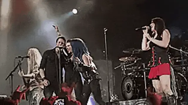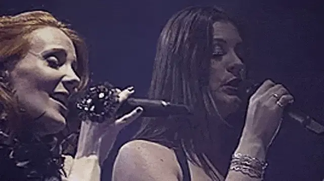 Man in red shirt speaking into a microphone with the Spanish phrase 'Me Intriga' displayed.