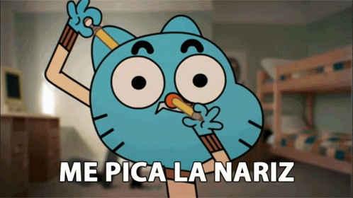 Gumball Watterson from The Amazing World of Gumball humorously states 'Me Pica La Nariz' (My Nose Itches).