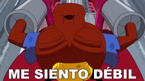 a cartoon character is flexing his muscles with the words me siento debil below him