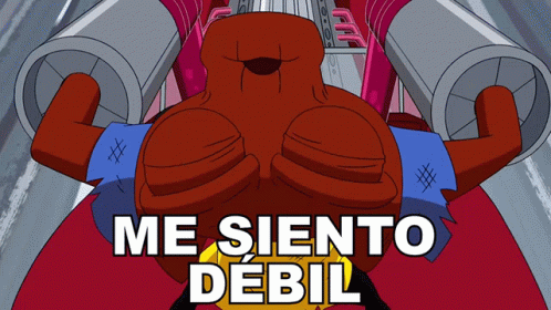 A muscular Ben10 alien character, possibly Humungousaur, with the Spanish text 'ME SIENTO DÉBIL' (I feel weak) overlaid.