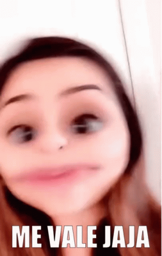 A person with a distorted face filter saying "I don't care haha" with text "ME VALE JAJA" on screen.