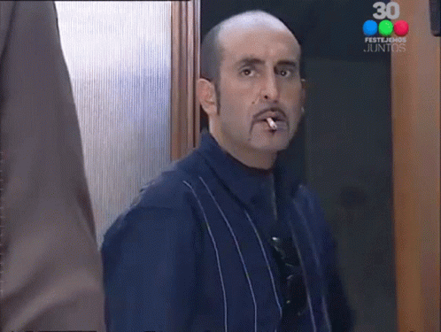 Alejandro Fiore, known from Los Simuladores, smoking a cigarette and saying 'Me Voy' (I'm Leaving).
