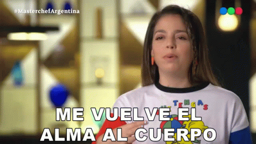 A woman on Masterchef Argentina expresses relief, saying 'Me vuelve el alma al cuerpo' (My soul returns to my body).