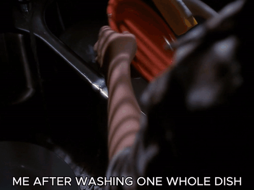 Buffy Summers, played by Sarah Michelle Gellar, cries dramatically after washing just one dish, a relatable meme.